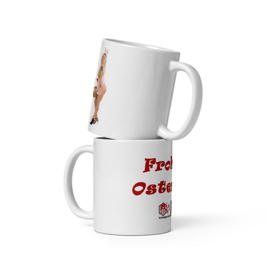 Weiße, glänzende Tasse „Ostern“ Darina 1 (Erotik)