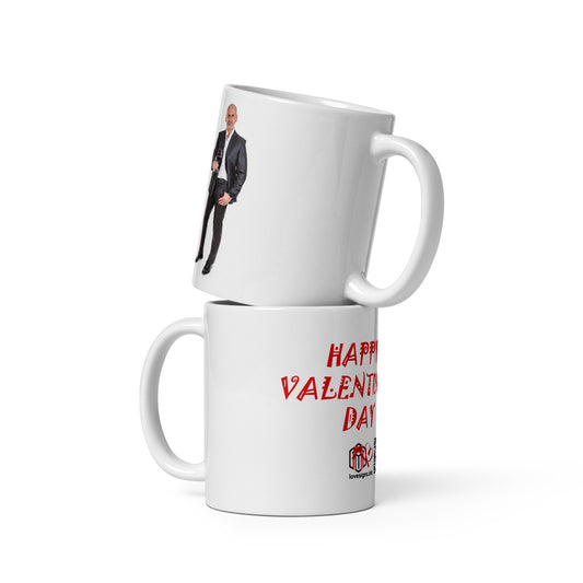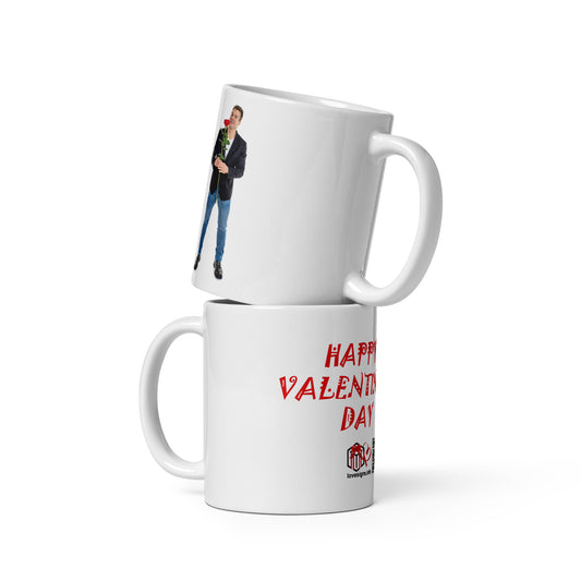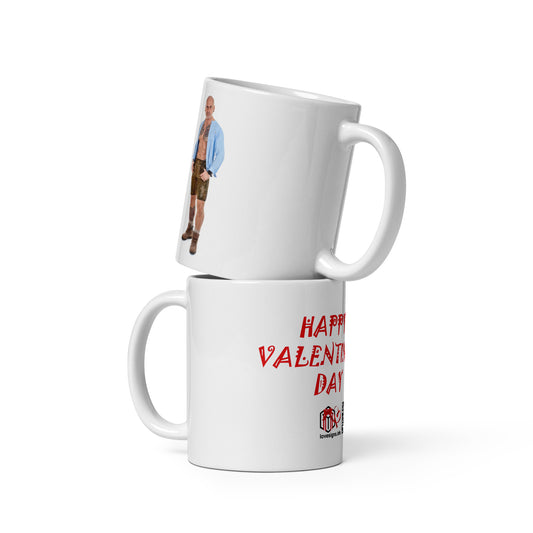 Weiße, glänzende Tasse „Valentinstag“ Mann 1 (Erotik)