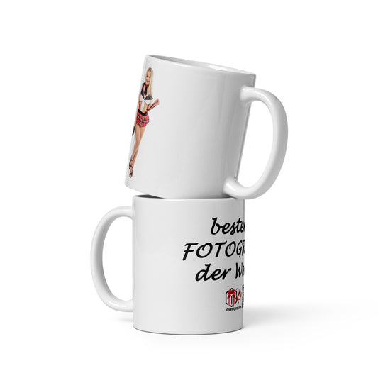 Weiße, glänzende Tasse „Für Fotografen“ Darina 1 (Erotik)