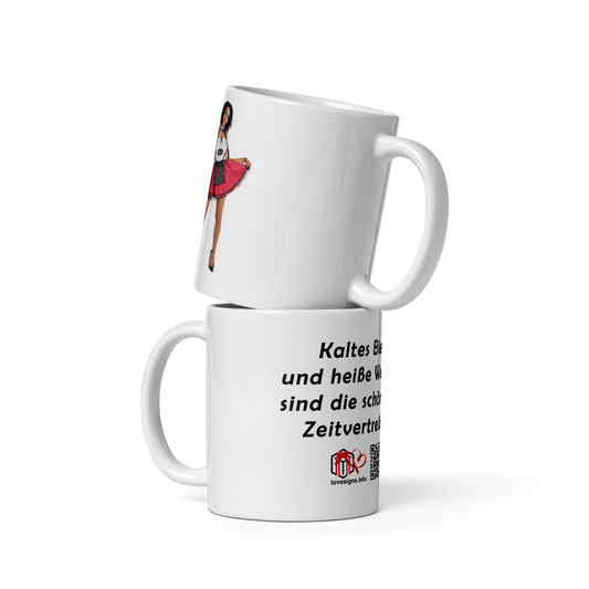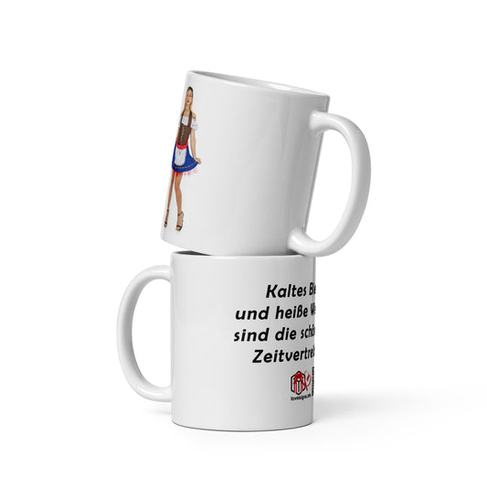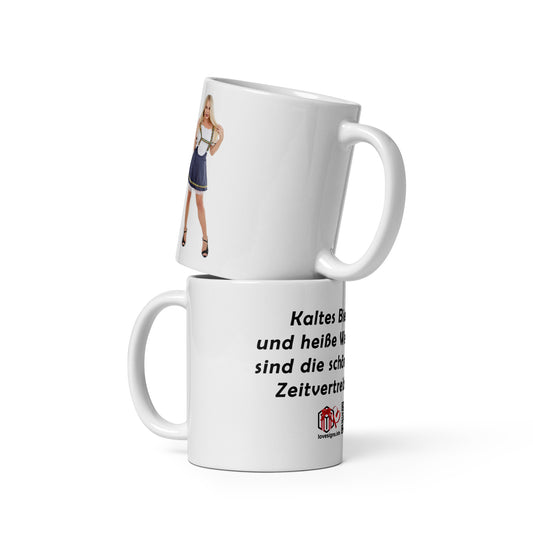Weiße, glänzende Tasse „Bier“ Darina 1 (Erotik)