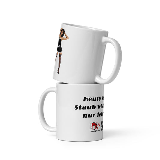 Weiße, glänzende Tasse „Valentinstag“ Mann 2 (Erotik)